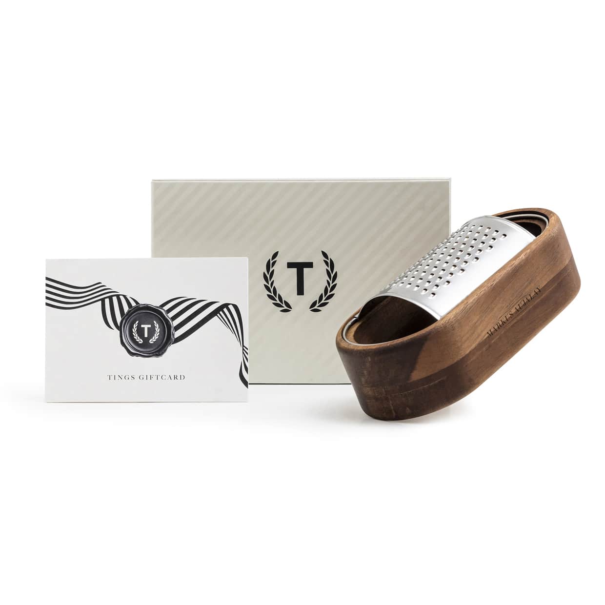 En fin present bestående av ett Tings Giftcard plus ett rivjärn från Markus Aujalay.