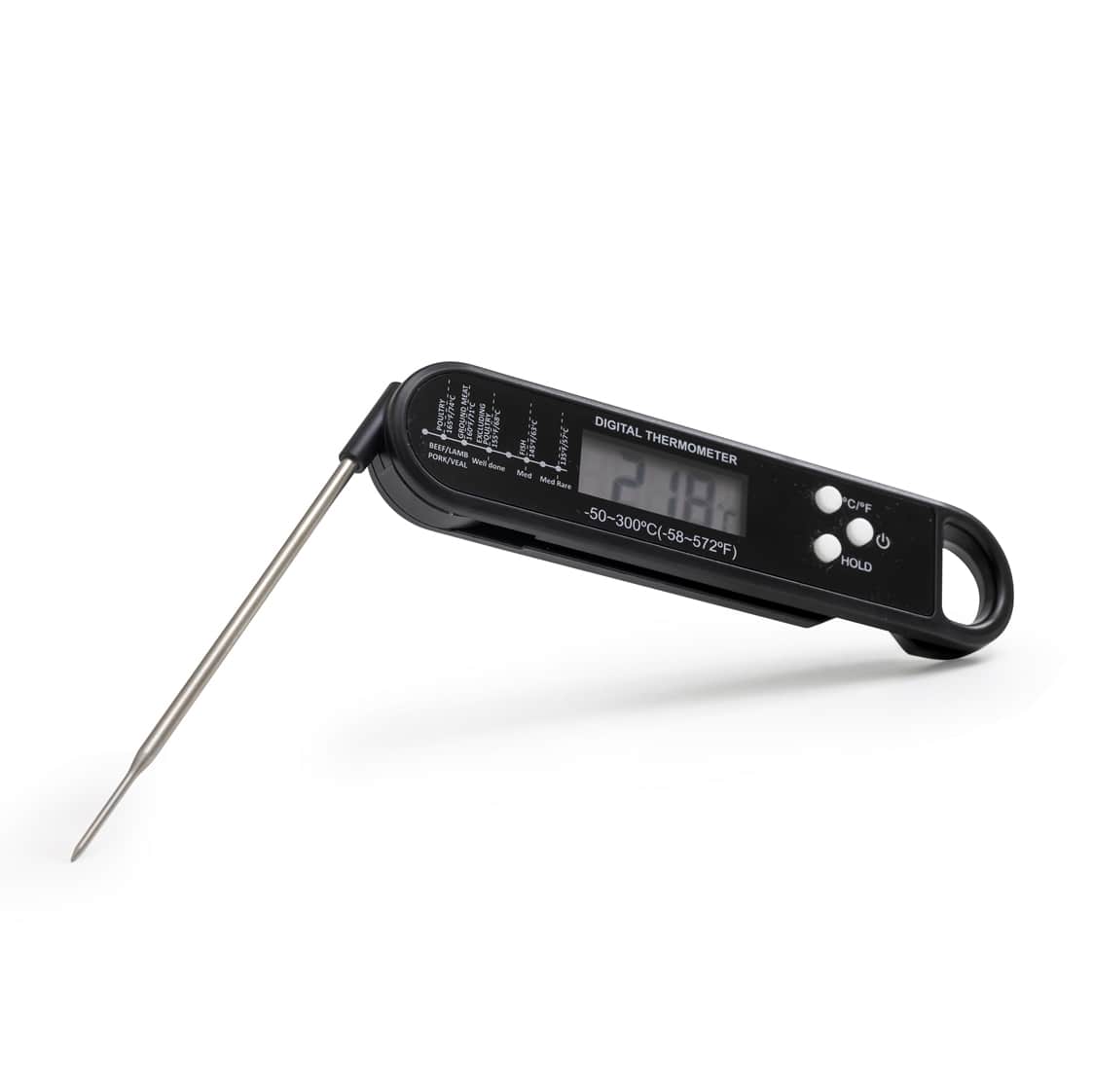 Tings omtyckta gåvokort tillsammans med en digital stektermometer.